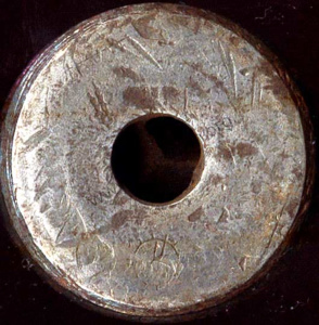 | OBSERVACIONES: | Disparo perforante-trazador. Vaina de latón con proyectil de acero negro, con banda roja sobre la de forzamiento, sujeto con 3 granetazos. Laca roja en junta de pistón. Agujero de 5mm en la vaina para su inutilización. |