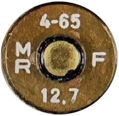 | OBSERVACIONES: | Cartucho Ordinario Mle.F1 con bala ojival blindada cobreada con núcleo de acero y capacete de aluminio con la punta cortada y se ve parte del capacete de aluminio, vaina de latón con pistón de latón sellado con barniz violeta y tres granetazos a. El latón lo suministra la Tréfileries et Laminoirs de la Méditerranée |