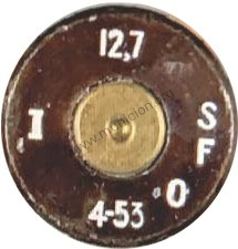 | OBSERVACIONES: | Cartucho Ordinario Experimental con bala ojival blindada cobreada con núcleo de acero y capacete de aluminio, vaina de acero cromado con el cuello ennegrecido con pistón de latón sellado con barniz purpura. El latón lo suministra la Compañía Francesa del Metal |