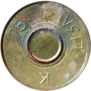 | OBSERVACIONES: | Cartucho Ordinario con bala ojival cobreada blindada M2 , vaina de latón con pistón de latón percutido sellado con barniz verde y tres granetazos. Bala ordinaria tipo M1 americano. |