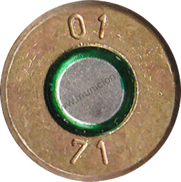 | OBSERVACIONES: | Cartucho con vaina de acero gris verdoso, proyectil de acero cobreado. |