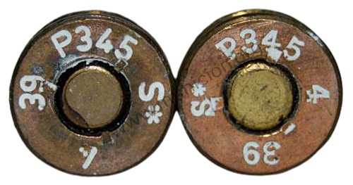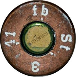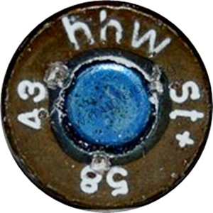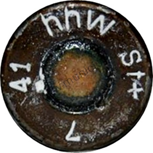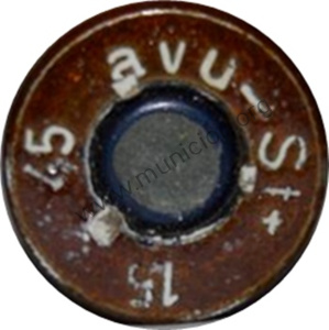 | OBSERVACIONES: | Cartucho semiperforante, bala S.m.E. (Spitzgeschoss mit Eisenkern) bala aguda con envuelta de Zink,con núcleo de hierro, y vaina de acero lacado en marrón. El segmento entre avu y St+ indica que el pistón tiene un solo oido. Pistón 30/40 (Zdh.30/40). La fábrica P345/avu formaba parte de Polte. Fabricaron municiones de 1938 a 1945. El código avu de 1940 a 1943 solo iba estampado en vainas de latón, posteriormente a partir de 1943 también fue estampado el código avu en vainas de acero con bala S.m.E. Esta fábrica a partir de 1940 principalmente se dedicó a fabricar municiones para la fuerza aerea. |
