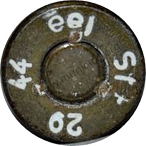 | OBSERVACIONES: | Cartucho semiperforante, bala S.m.E. (Spitzgeschoss mit Eisenkern) bala aguda con núcleo de hierro, y vaina de acero lacado en marrón. El segmento entre dom y St+ indica que el pistón tiene un solo oido. |
