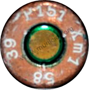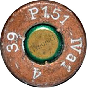 | OBSERVACIONES: | Cartucho semiperforante, bala S.m.E. (Spitzgeschoss mit Eisenkern) bala aguda con núcleo de hierro y envuelta de latón. Vaina de latón. Pistón 30-40 (Zdh.30-40).La fábrica P151/dnf fabricó munición de 1933 a 1945. La conversión del código P151 a eom se produjo en 1940. |