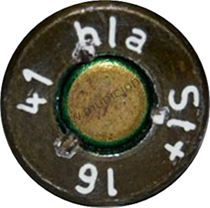 | OBSERVACIONES: | Cartucho de fogueo. Vaina acero cobreado y bala madera teñida de color morado. VII=Bochumer Verein für Gusstahlfabrikation, Bochum, g=Hirsch Kupfer und Messingwerke, Werk Finnow/Mark, 1= proporciones elementos usados en fabricación vaina. |