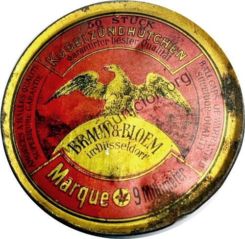OBSERVACIONES: | Vaina de latón niquelado y bala de plomo esférica. S.U.R.= Sine Ulla Rosione = no erosivo en latín. Marca comercial de GFL usada en cartuchos anulares. |
